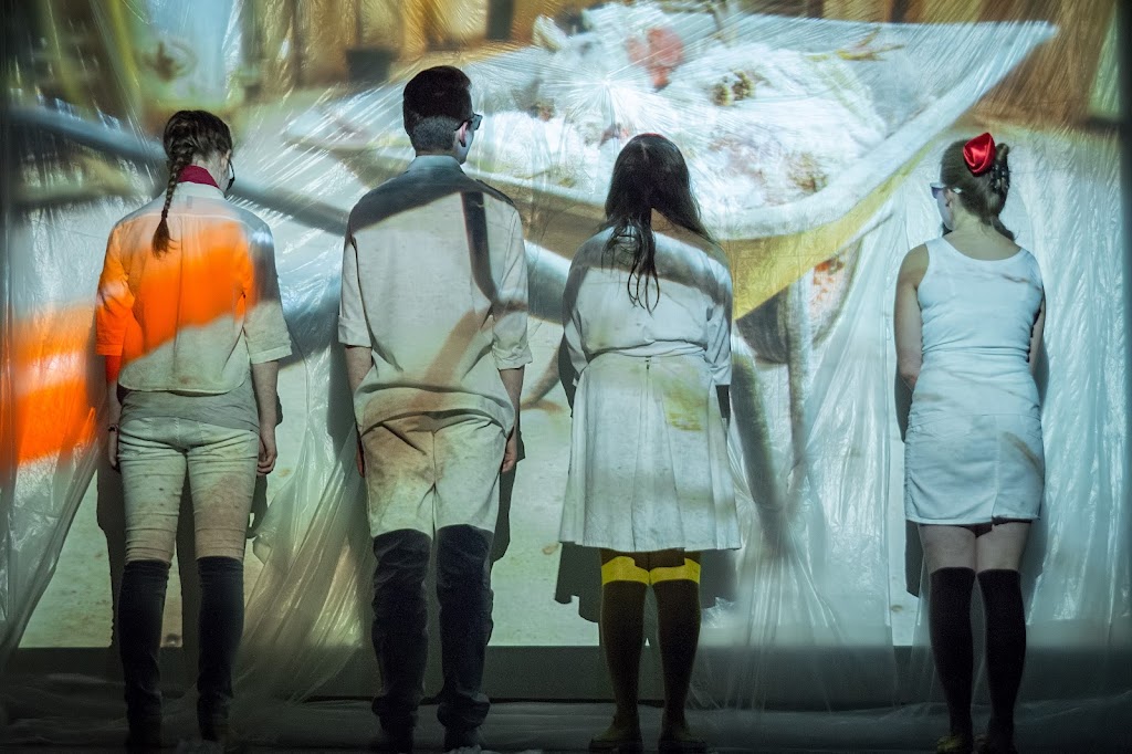 - Die Theatergruppe „Fastfood“ hat unter der Leitung von Laura Freisberg ein Theaterstück über das Leben von fünf Hühnern einer Mastanlage mit tausenden Hühnern entwickelt. Frau Bauer ist schon lange keine Bäuerin mehr, sondern eine knallharte Geschäftsfrau und marktführend im System der industrialisierten Landwirtschaft. Doch ihre tierliebe Tochter Anneliese hält die Scheinidylle des Bauernhof Bauer langsam nicht mehr aus. Sich anpassen oder rebellieren? Fressen oder gefressen werden? Diese Fragen stellen sich sowohl Frau Bauer, Anneliese als auch ihre Hühner. Doch etwas zu ändern - ist das so einfach?